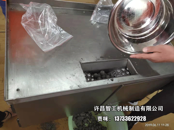 2019年11月30日,駐馬店客戶自帶餡料來(lái)許昌智工試機(jī)元宵制餡機(jī),試機(jī)效果滿意,已達(dá)成合作意向,等待回去試煮后再定機(jī),期待與您的合作。 該元宵制餡機(jī),220V普通家用電,每小時(shí)產(chǎn)量140公斤,根據(jù)您的需求,3.5到10克可供您選擇,配用動(dòng)力1.1千瓦,整體采用食品級(jí)不銹鋼材質(zhì),使用方便成型效果好,有需要的朋友們電話聯(lián)系18939101388(微信同號(hào))姚麗