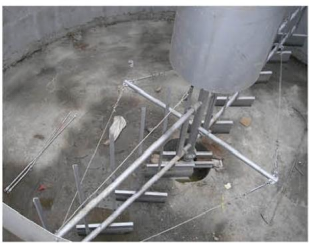 工作原理:SZX 型中心傳動濃縮機(jī)采用蝸輪蝸桿(<φ8m 可采用擺線針輪減速機(jī),>φ14m 采用中心回轉(zhuǎn)齒輪)傳動,刮泥壁上設(shè)計有縱向攪拌柵條,刮臂旋轉(zhuǎn)時柵條起攪拌作用,加速活性污泥的下沉,刮泥板外緣線速度≤3m/min。整個刮泥機(jī)構(gòu)可以手動提升400mm (用擺線針輪減速機(jī)不可以提升)。