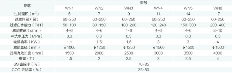 注:當(dāng)廢水濃度越高、網(wǎng)目越高,SS、COD 去除率越高??筛鶕?jù)用戶需求,定做處理量大的機型和不銹鋼材質(zhì)配件。